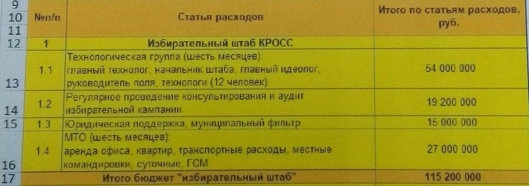 Figure 2. Excerpt from the budget of the “Legitimacy” project (in Russian)