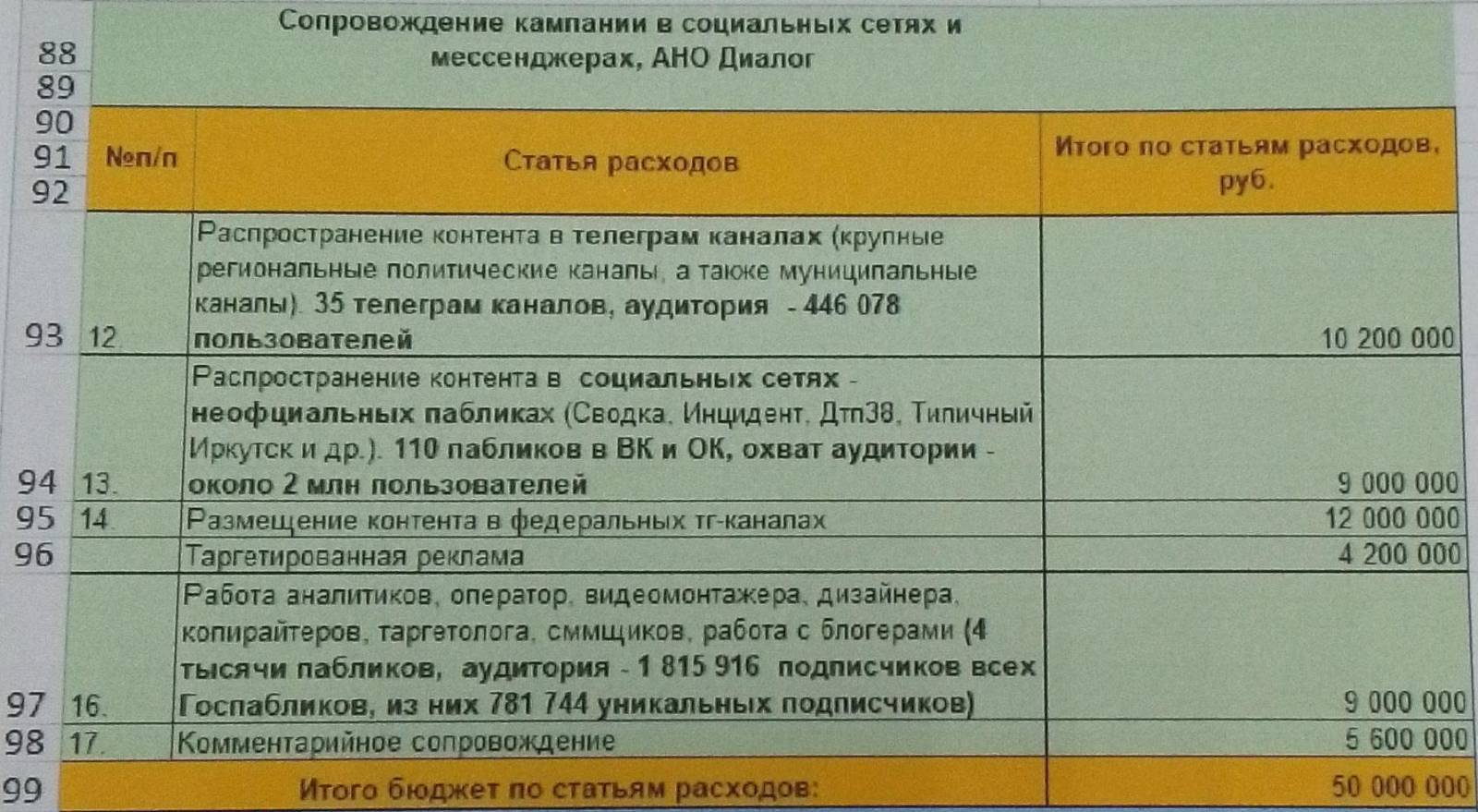 Figure 3. Dialog’s budget for social media work (in Russian)